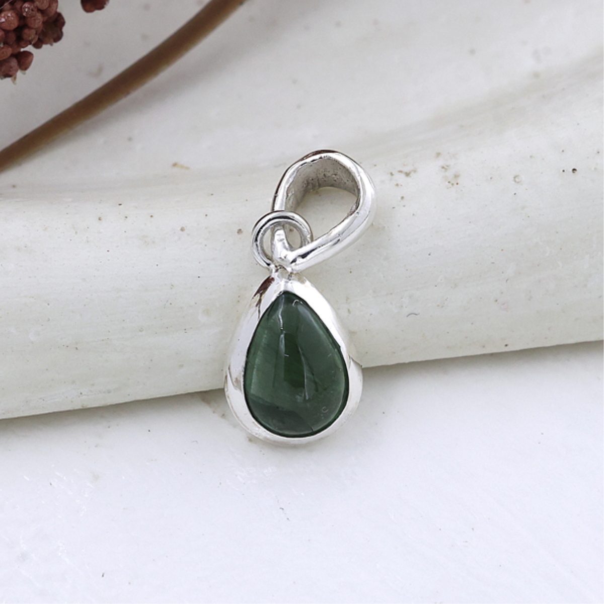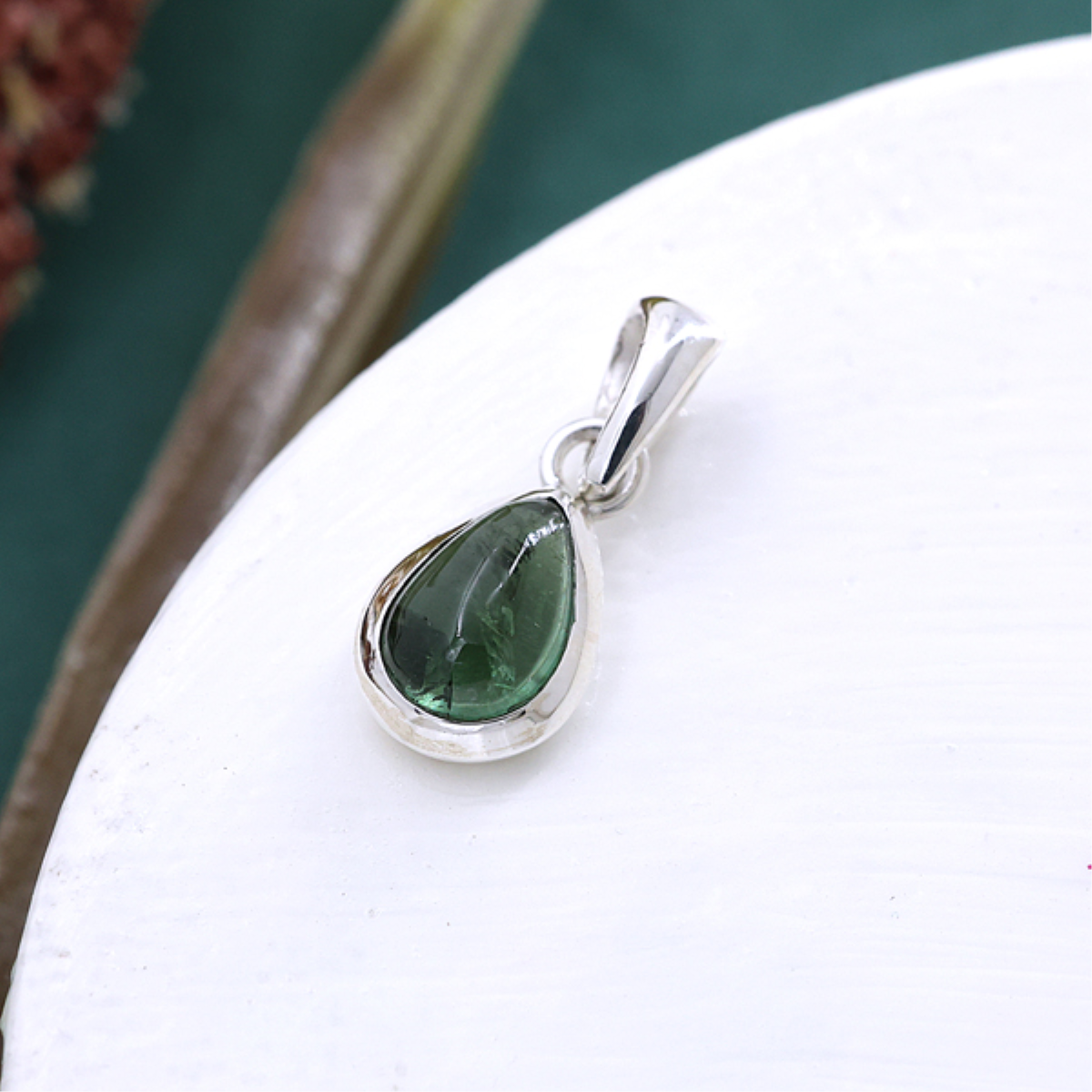 Elevate your style with this stunning pear-shaped Green Tourmaline pendant, elegantly set in polished sterling silver. The vibrant green gemstone exudes natural beauty, while the unique looped design adds a modern, sophisticated touch. A timeless accessory perfect for any occasion or a thoughtful gift for someone special.
