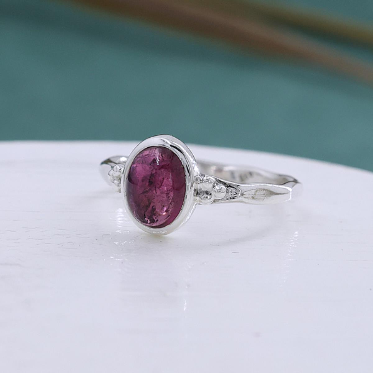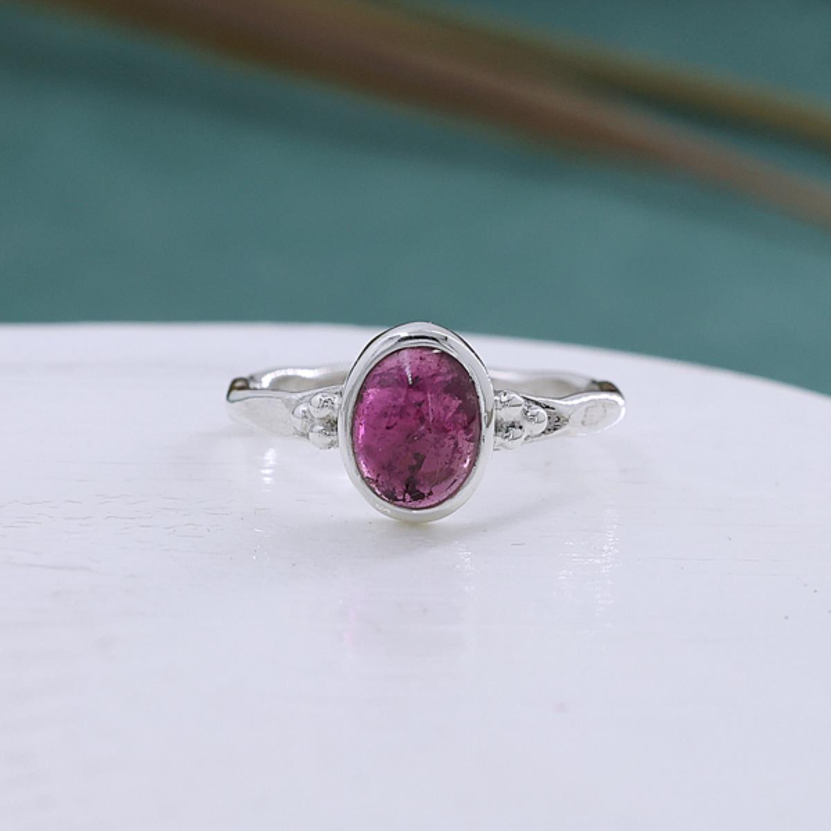 This stunning sterling silver ring features a beautifully oval-shaped Pink Tourmaline gemstone. The vibrant pink hue of the gemstone adds a soft yet striking elegance, perfect for daily wear or special occasions.